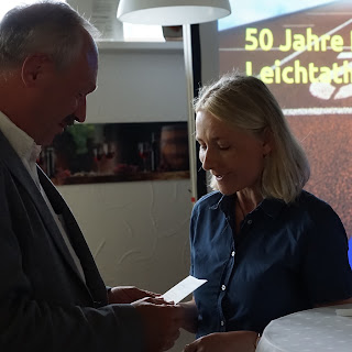 Die Stadt Gerlingen hat anlässlich der Feier des 50jährigen Bestehens der Leichtathletik-Abteilung die langjährige enge und sehr vertrauensvolle Zusammenarbeit gewürdigt. Ulrike Hoffmann-Heer, Leiterin des Hauptamtes betonte in ihrer Ansprache insbesondere die Bedeutung des Solitudelaufs für das sportliche Geschehen in Gerlingen, die großen sportlichen Erfolge der Leichtathleten und die gemeinsam organisierten Stafettenläufe zu den Partnerstädten. Für 2018 sei bereits das große Unterfangen eines völkerverbindenden Friedenslaufes über Frankreich nach Seaham mit einer Gesamtstrecke von 1300 Kilometern in Vorbereitung. Ulrike Hoffmann-Heer überreichte im Namen von Bürgermeister Brenner und der Stadtverwaltung einen Scheck über 250 € für die Leichtathletikabteilung.