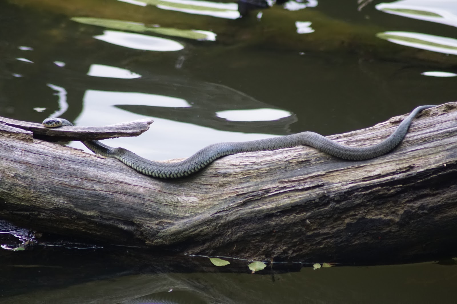 Joggen am Bärensee ist zu allen Jahreszeiten ein Genuss. Mit dem Sommer zeigen sich auch die Ringelnattern wieder, die hoffentlich möglichst viele von diesen Hantavirus-verbreitenden Rötelmäusen verspeisen. Die Aufnahmen entstanden am oberen der Bärenseen, gegenüber dem Bärenschlössle. Die Ringelnattern sonnten sich auf den Bäumen, die in den See hineinragen. Das ist doch ein Grund, selbst mal wieder auf eine Lauf-Runde dorthin zu gehen.